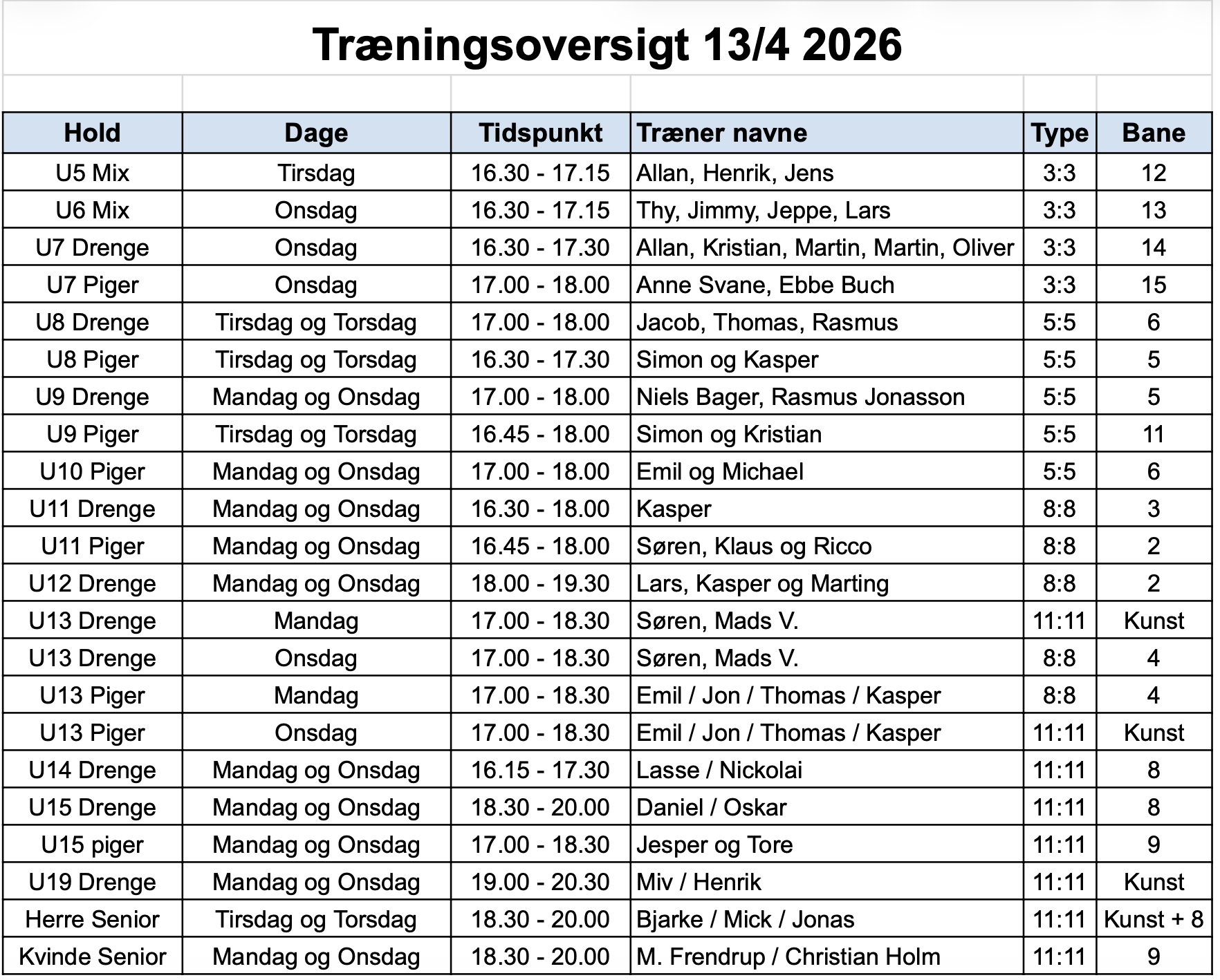 Baneoversigt (vær obs på at bane 9 kun er en træningsbane)